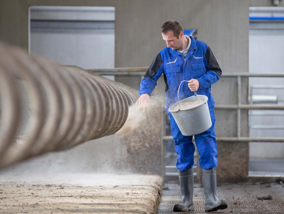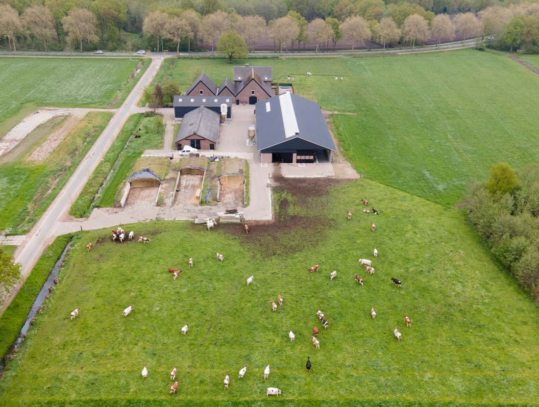 Trots toont Henk van Hell zijn nieuwe ligboxenstal. De melkstal (2x10), de drie rijen ligboxen, de brede voergang aan de zijkant, de separeerruimte en de afkalfruimte. “Het klopt allemaal”, zegt hij. Veel daglicht en verse lucht. En minstens zo belangrijk, de koeien lopen los in plaats van dat ze de wintermaanden vast staan. In deze stal kunnen zijn koeien hun natuurlijke gedrag vertonen. Daar kan hij enorm van genieten.