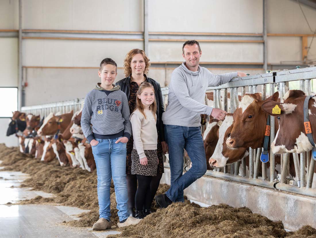 Er kon geen koe meer bij. “Toen stonden wij voor de keus: stoppen of investeren in een nieuwe stal. Wij zijn melkveehouders in hart en nieren en dus kozen we natuurlijk voor het laatste, van een grupstal naar een ligboxenstal. In oktober 2019 is de aannemer begonnen met de bouw en in maart 2020 is deze in gebruik genomen. We werken nu ruim een jaar in deze stal en hebben er geen moment spijt van gehad.” Hij toont de melkstal, die er nieuw uitziet, maar is overgenomen van een melkveehouder die met zijn bedrijf is gestopt. De melkstal was slechts enkele jaren in gebruik geweest. “Dat scheelde mij de helft van de kosten. In mijn oude stal liep ik met vijf melkstellen achter de koeien langs. Daar was ik elke melkbeurt twee uur mee bezig. Nu ben ik in één uur klaar en kan ik bijvoorbeeld samen met mijn gezin ontbijten. Dat lukte mij in het verleden nooit.”
