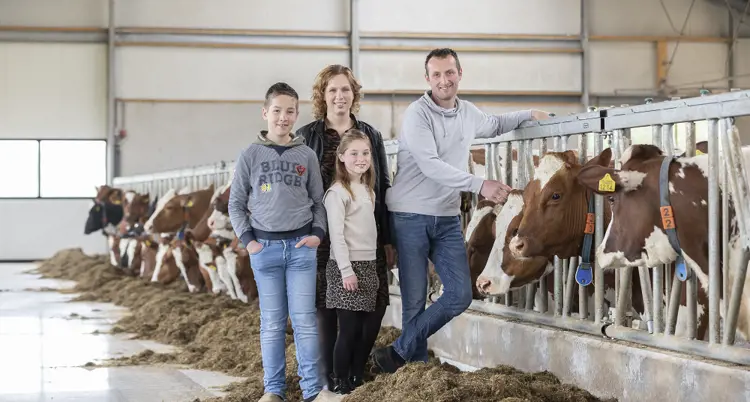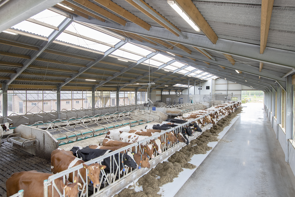En het allerbelangrijkste, de productie van de koeien is na ingebruikname van de nieuwe stal met sprongen omhooggegaan, in een jaar tijd van 7.000 naar 8.000 liter per koe. Ook de vet- en eiwitgehaltes zijn gestegen. “Ik zie dat de koeien het beter doen. Ze kunnen in deze stal meer bewegen en zijn gezonder. Dat resulteert in een hogere productie en ook het antibioticagebruik is lager.”