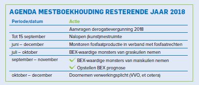 Nederland heeft verlenging gekregen van de derogatie voor minimaal twee jaar. Daarnaast is dit het eerste jaar in de melkveehouderijsector waarin de fosfaatrechten gelden. Daarbij blijven de bestaande stelsels, zoals de gebruiksnormen, mestverwerkingsplicht en de grondgebonden groei melkveehouderij van kracht. Deze spelregels zijn van invloed op uw strategie en de manier waarop u met het teeltplan omgaat.Gaat u voor minimaal 80% grasland? Of doet u toch niet mee aan de derogatie? Wilt u meer grasland in het areaal om voor de verantwoorde en grondgebonden groei melkveehouderij genoeg fosfaatplaatsingsruimte te hebben? Gaat u voor minder snijmaïs en meer MKS? De keuzes die u maakt bepalen of uw gewonnen ruwvoer in het huidige stelsel optimaal benut wordt.