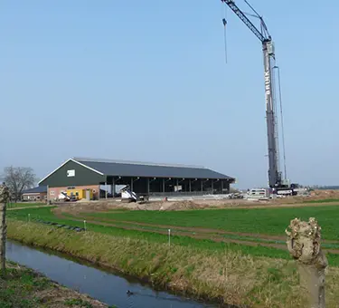 Op het melkveebedrijf Peek en Fokker in Herveld wordt druk gewerkt aan de verbreding van de bestaande ligboxenstal.