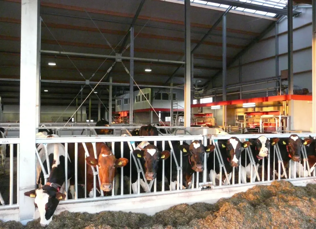 De melkkoeien worden met vier Lely A5 melkrobots gemolken. De nieuwbouw krijgt, net als de bestaande stal, een zeer open karakter.