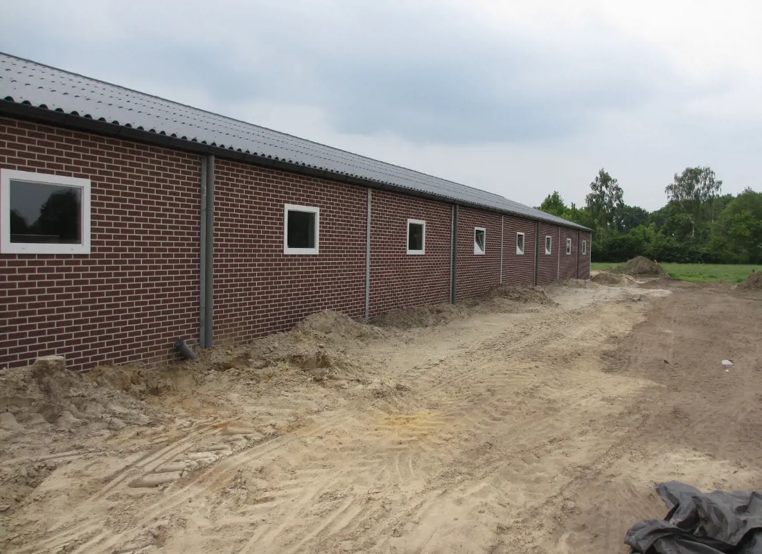 Om deze mooi ontworpen biologische stal voor 615 vleesvarkens, zonder binnenroosters, hebben wij de volgende werkzaamheden verzorgd: