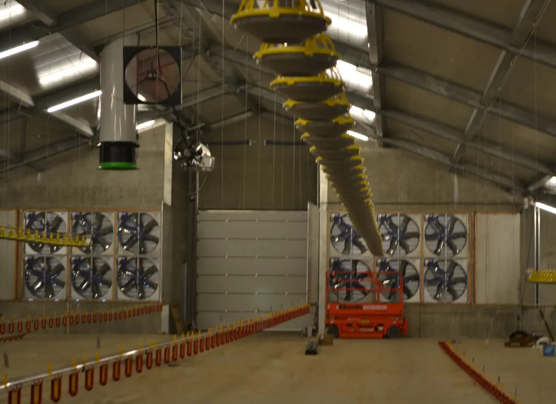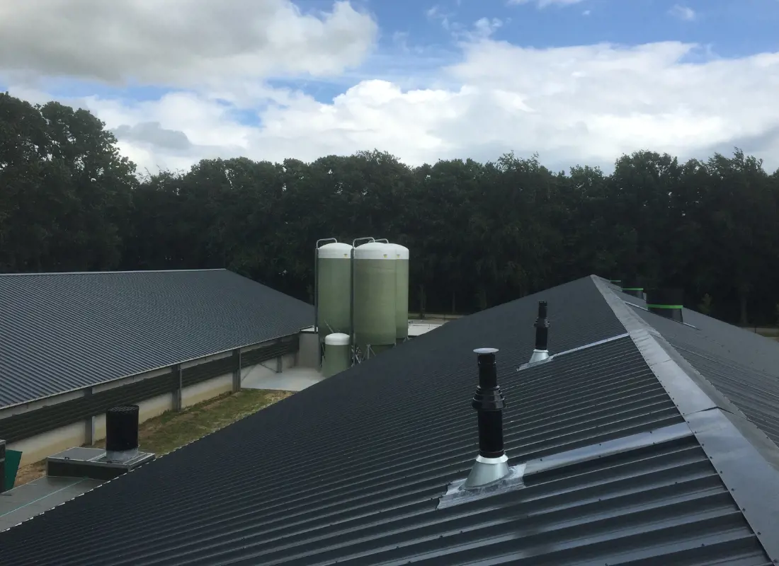 - De stuwbakken, welke de ventilatielucht recht naar boven moet sturen, zijn geïntegreerd binnen de stal om het aanzicht van de stallen te verfraaien.
