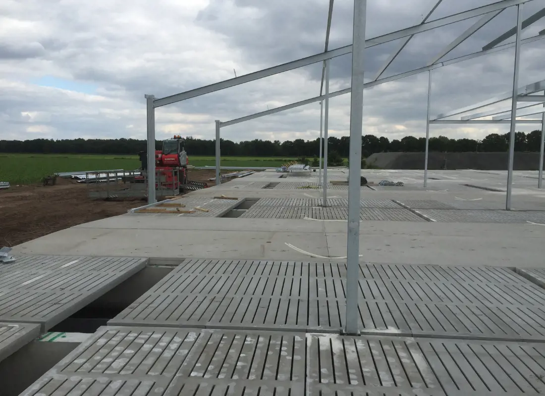 - Halfroostervloer met 3 meter roostersvloer en 2 meter sterk hellende dichte vloer